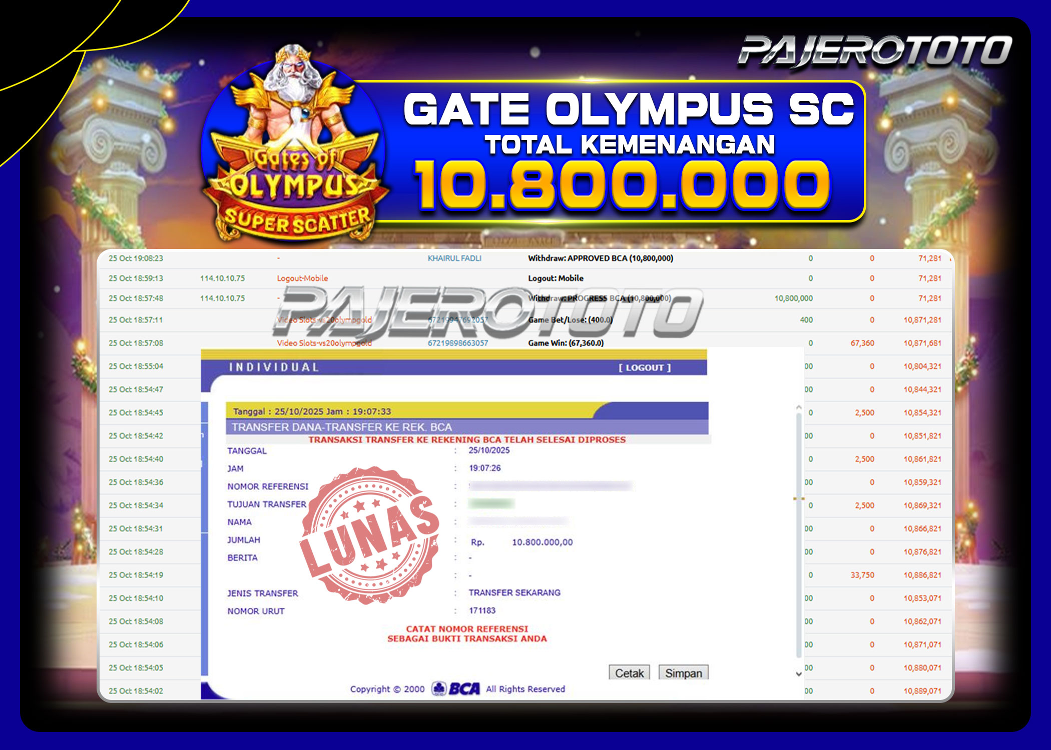 JACKPOT PAJEROTOTO SLOT GATES OF OLYMPUS SUPER SCATTER Rp 10.800.000,- 25 OKTOBER 2025 – LUNAS..!!