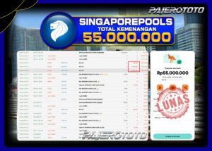 Togel online adalah salah satu game favorit yang tersedia di situs pajerototo yang dapat di maikan semua kalangan dari remaja hingga dewasa. Berikut adalah bukti pembayaran kemenangan salah satu pemain setia situs pajerototo di permainan togel SINGAPORE POOLS sebesar Rp 55.000.000,- dan sudah kami bayar secara lunas.