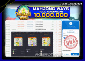 Slot online adalah salah satu game favorit yang tersedia di situs pajerototo yang dapat di maikan semua kalangan dari remaja hingga dewasa. Berikut adalah bukti pembayaran kemenangan salah satu pemain setia situs pajerototo di permainan Slot Online MAHJONG WAYS sebesar Rp10.000.000,- dan sudah kami bayar secara lunas.