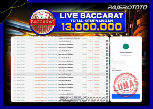 Live casino online adalah salah satu game favorit yang tersedia di situs pajerototo yang dapat di maikan semua kalangan dari remaja hingga dewasa. Berikut adalah bukti pembayaran kemenangan salah satu pemain setia situs pajerototo di permainan LIVE CASINO BACCARAT sebesar Rp 13.000.000,- dan sudah kami bayar secara lunas.
