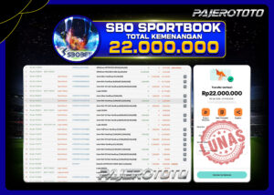 Sportbook online adalah salah satu game favorit yang tersedia di situs pajerototo yang dapat di maikan semua kalangan dari remaja hingga dewasa. Berikut adalah bukti pembayaran kemenangan salah satu pemain setia situs pajerototo di permainan SPORTSBOOK SBO sebesar Rp 22.000.000,- dan sudah kami bayar secara lunas.