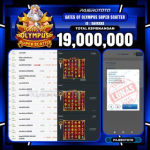 Slot  online adalah salah satu game favorit yang tersedia di situs pajerototo yang dapat di maikan semua kalangan dari remaja hingga dewasa. Berikut adalah bukti pembayaran kemenangan salah satu pemain setiap situs pajerototo di permainan Slot Online GATES OF OLYMPUS SUPER SCATTER sebesar Rp 19.000.000,- dan sudah kami bayar secara lunas.