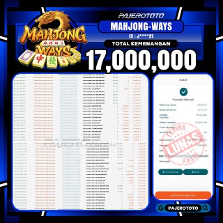 Slot online adalah salah satu game favorit yang tersedia di situs pajerototo yang dapat di maikan semua kalangan dari remaja hingga dewasa. Berikut adalah bukti pembayaran kemenangan salah satu pemain setia situs pajerototo di permainan Slot Online MAHJONG WAYS sebesar Rp 17.000.000,- dan sudah kami bayar secara lunas.