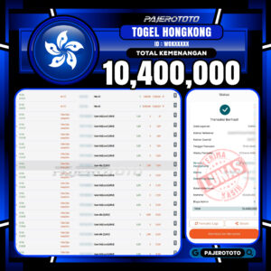 Togel online adalah salah satu game favorit yang tersedia di situs pajerototo yang dapat di maikan semua kalangan dari remaja hingga dewasa. Berikut adalah bukti pembayaran kemenangan salah satu pemain setia situs pajerototo di permainan TOGEL HONGKONG POOLS sebesar Rp 10.400.000,- dan sudah kami bayar secara lunas.