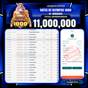 Slot online adalah salah satu game favorit yang tersedia di situs pajerototo yang dapat di maikan semua kalangan dari remaja hingga dewasa. Berikut adalah bukti pembayaran kemenangan salah satu pemain setia situs pajerototo di permainan Slot Online GATES OF OLYMPUS 1000 sebesar Rp 11,000,000,- dan sudah kami bayar secara lunas.