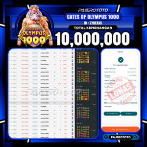JACKPOT PAJEROTOTO SLOT GATES OF OLYMPUS 1000 Rp 10,000,000, – 07 MARET 2026 – LUNAS..!!
