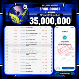 Sportbook online adalah salah satu game favorit yang tersedia di situs pajerototo yang dapat di maikan semua kalangan dari remaja hingga dewasa. Berikut adalah bukti pembayaran kemenangan salah satu pemain setia situs pajerototo di permainan SPORT SOCCER sebesar Rp 35.000.000,- dan sudah kami bayar secara lunas.