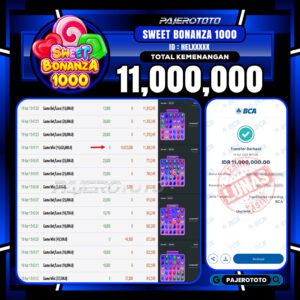 Slot online adalah salah satu game favorit yang tersedia di situs pajerototo yang dapat di maikan semua kalangan dari remaja hingga dewasa. Berikut adalah bukti pembayaran kemenangan salah satu pemain setia situs pajerototo di permainan Slot Online SWEET BONANZA 1000 sebesar Rp 11,000,000,- dan sudah kami bayar secara lunas.