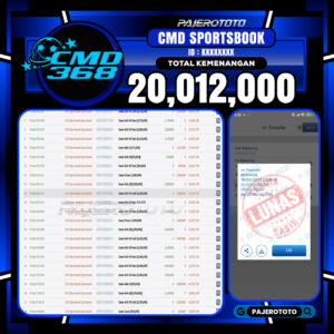 Sportbook  online adalah salah satu game favorit yang tersedia di situs pajerototo yang dapat di maikan semua kalangan dari remaja hingga dewasa. Berikut adalah bukti pembayaran kemenangan salah satu pemain setia situs pajerototo di permainan SPORTSBOOK CMD sebesar Rp 20.012.000,- dan sudah kami bayar secara lunas.