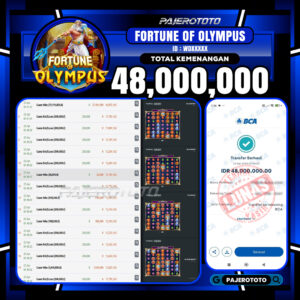 slot online adalah salah satu game favorit yang tersedia di situs pajerototo yang dapat di mainkan semua kalangan dari remaja hingga dewasa. Berikut adalah bukti pembayaran kemenangan salah satu pemain setia situs pajerototo di permainan FORTUNE OF OLYMPUS sebesar 48,000,000,- dan sudah kami bayar secara lunas.
