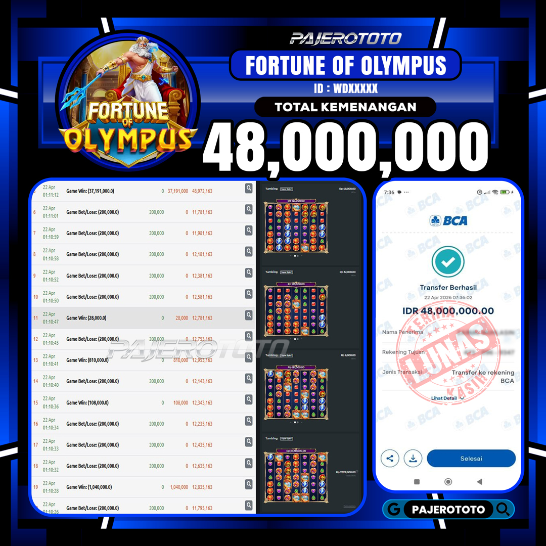 JACKPOT PAJEROTOTO SLOT FORTUNE OF OLYMPUS 48,000,000,- 22 APRIL 2026 – LUNAS..!!