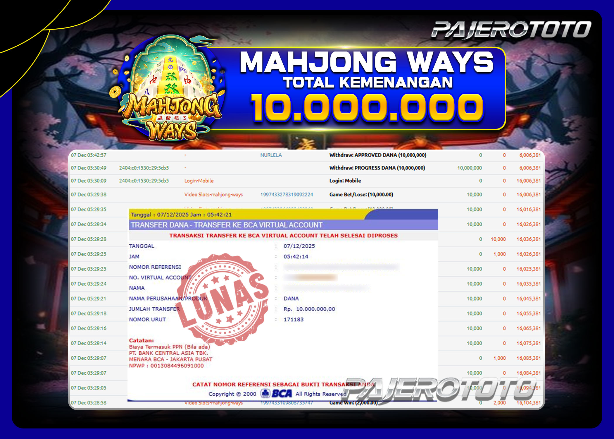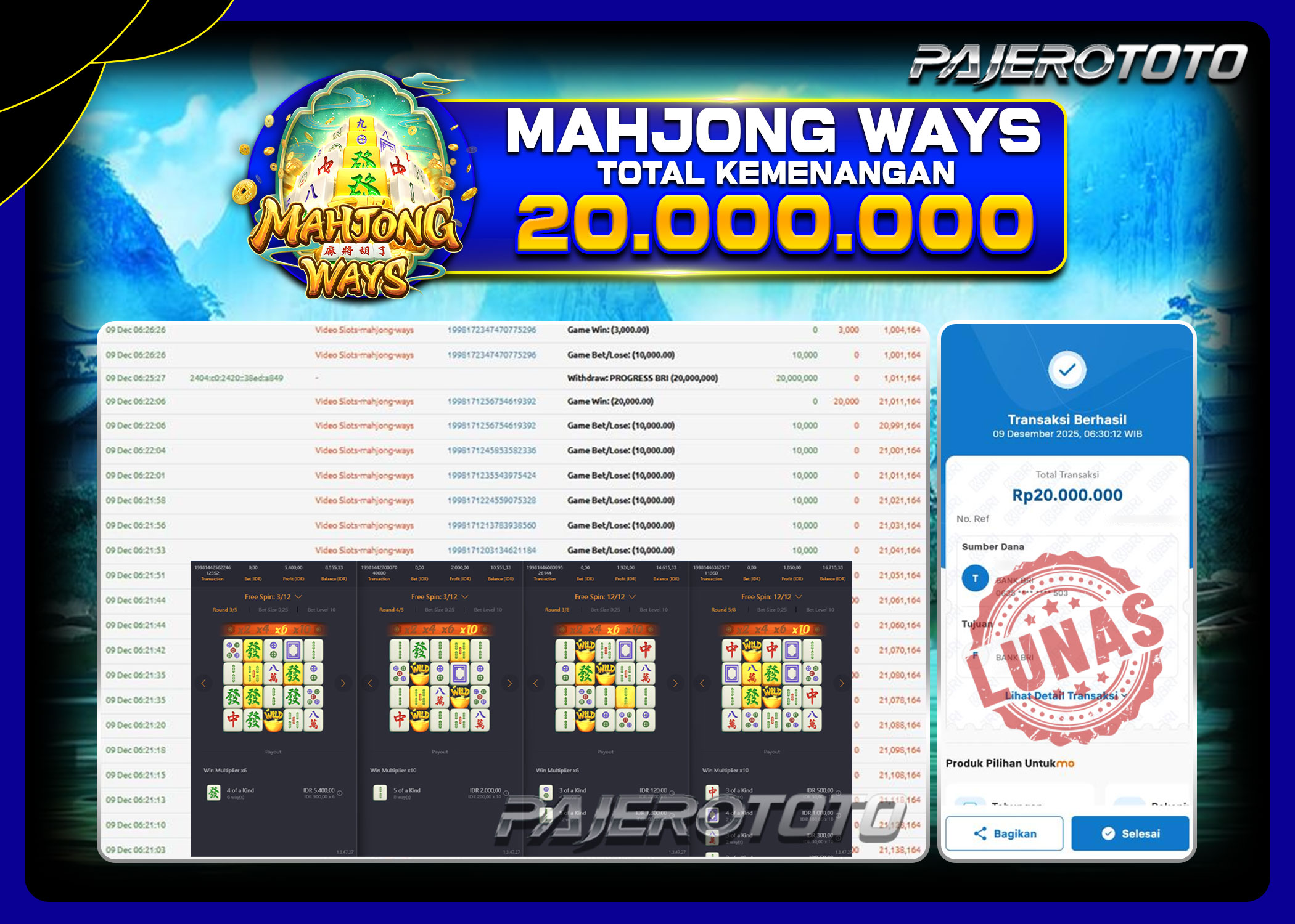 JACKPOT PAJEROTOTO SLOT MAHJONG WAYS Rp 20.000.000, – 09 DESEMBER 2025 – LUNAS..!!