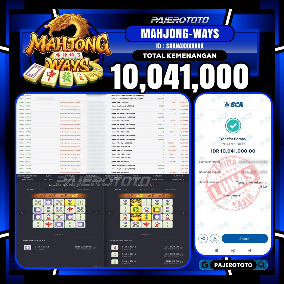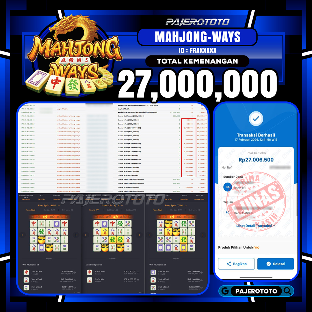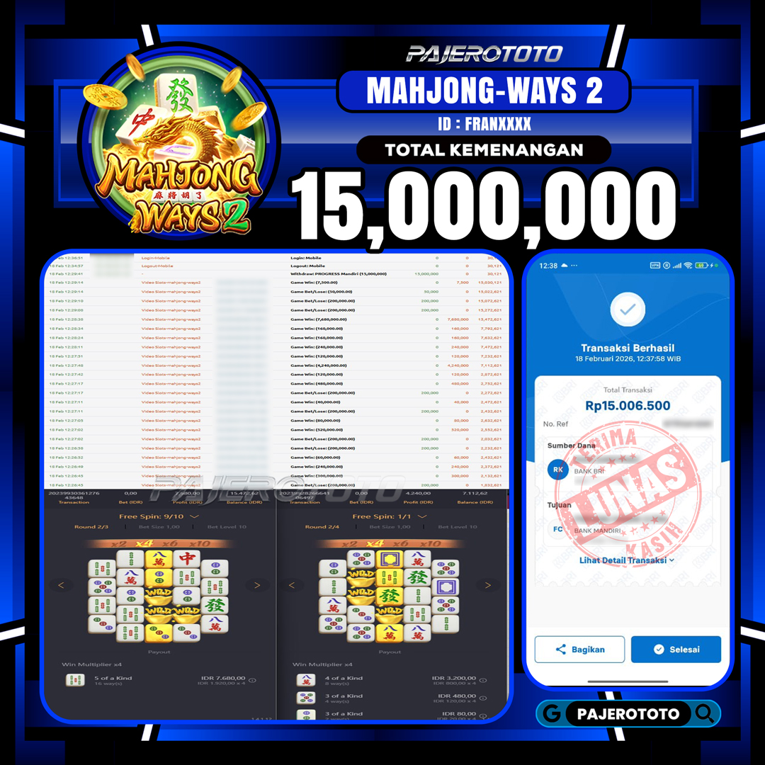 JACKPOT PAJEROTOTO SLOT MAHJONG WAYS 2 Rp 15,000,000,- 18 FEBRUARI 2026 – LUNAS..!!