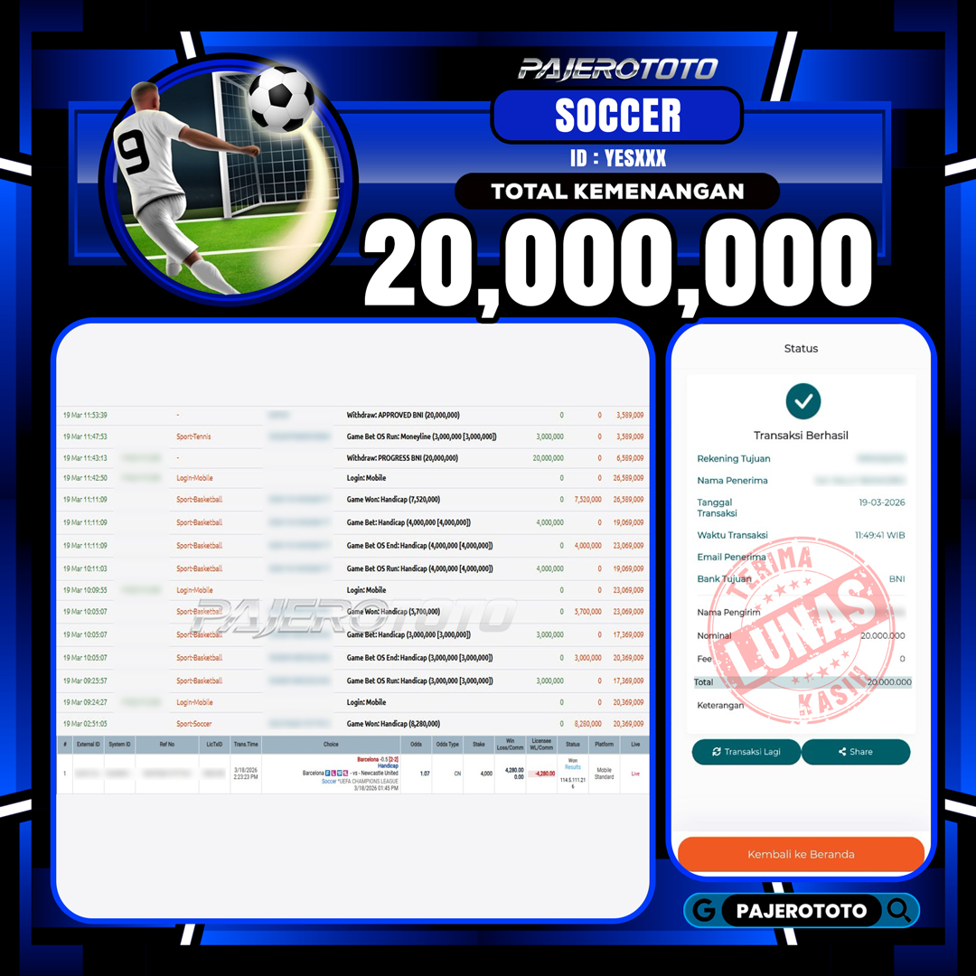 JACKPOT PAJEROTOTO SLOT WILD BOUNTY SHOWDOWN Rp 21,500,000 – 23 MARET 2026 – LUNAS..!! Slot online adalah salah satu game favorit yang tersedia di situs pajerototo yang dapat di maikan semua kalangan dari remaja hingga dewasa. Berikut adalah bukti pembayaran kemenangan salah satu pemain setia situs pajerototo di permainan Slot Online WILD BOUNTY SHOWDOWN sebesar […]