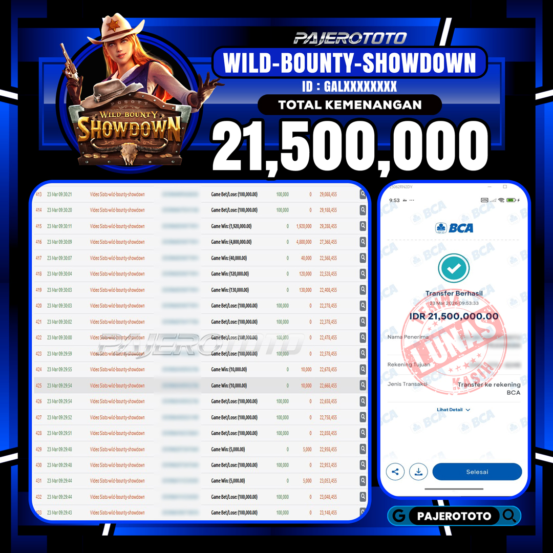 JACKPOT PAJEROTOTO SLOT WILD BOUNTY SHOWDOWN Rp 21,500,000,- 23 MARET 2026 – LUNAS..!!