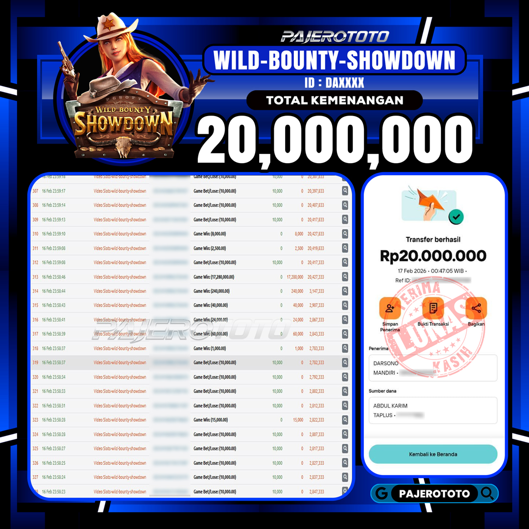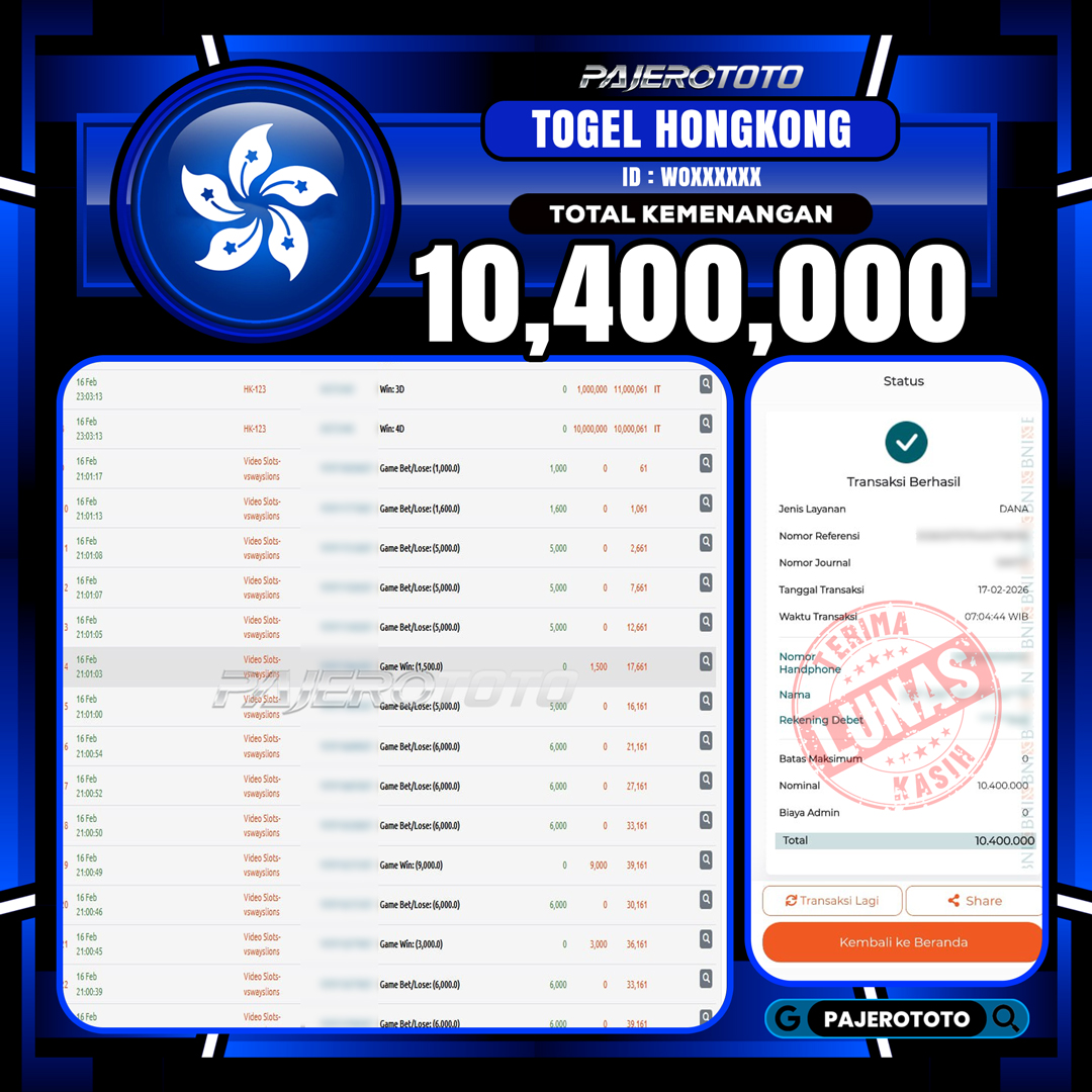 JACKPOT PAJEROTOTO TOGEL HONGKONG POOLS Rp 10.400.000,- 16 FEBRUARI 2026 – LUNAS..!!
