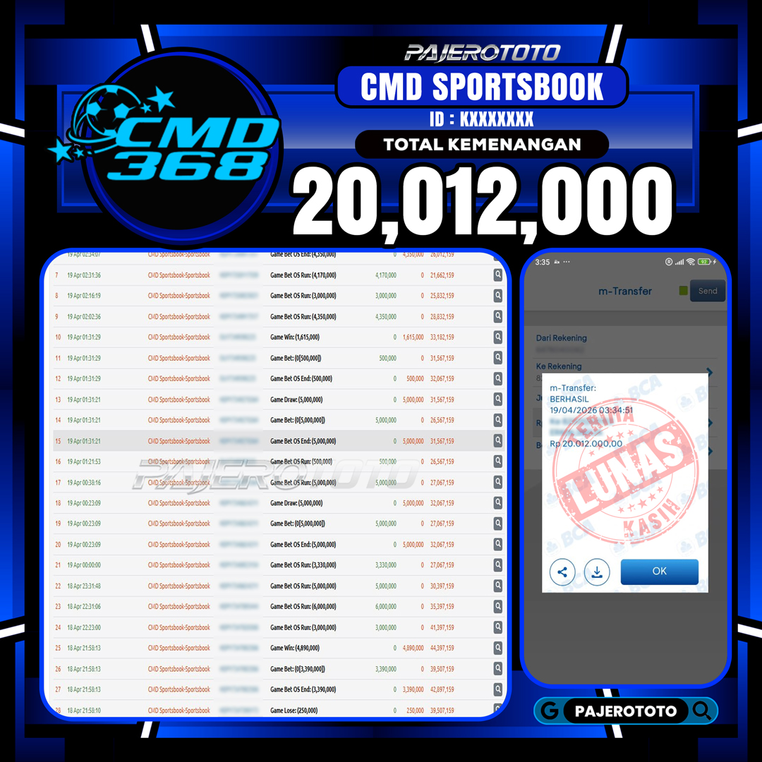 JACKPOT PAJEROTOTO SLOT SWEET BONANZA 1000 Rp 11,000,000, – 19 APRIL 2026 – LUNAS..!! Slot online adalah salah satu game favorit yang tersedia di situs pajerototo yang dapat di maikan semua kalangan dari remaja hingga dewasa. Berikut adalah bukti pembayaran kemenangan salah satu pemain setia situs pajerototo di permainan Slot Online SWEET BONANZA 1000 […]