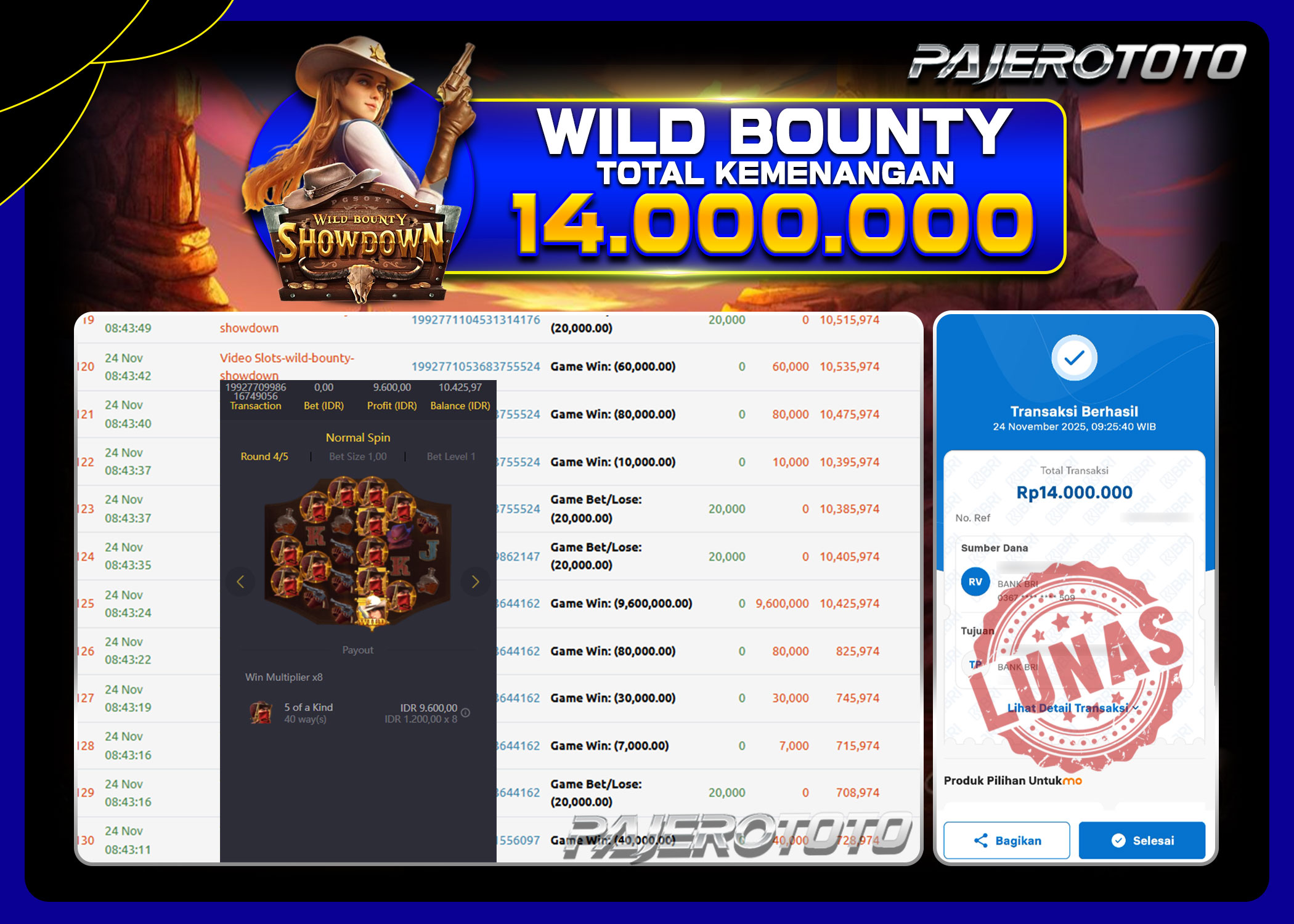 Slot Online – JACKPOT PAJEROTOTO SLOT WILD BOUNTY Rp 14.000.000,- 24 NOVEMBER 2025 – LUNAS..!!